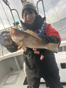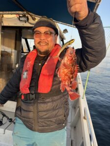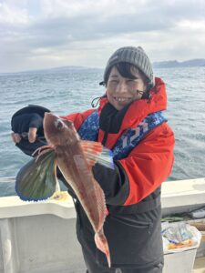 釣果は 真鯛0.9、オオモンハタ、ホウボウ 本日もありがとうございました♪