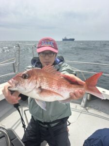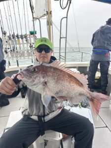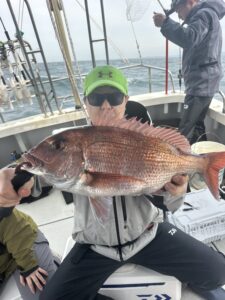 前日時化でゆっくり9時出船でしたが ウネリは残ってました ポイント到着早々に真鯛1.5㌔、1.0㌔ その後は沈黙もラスト2.5㌔でした